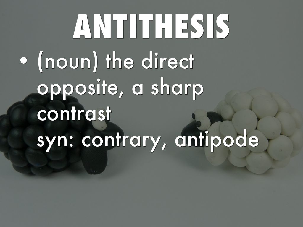 (noun) the direct opposite, a sharp contrast syn: contrary, antipode