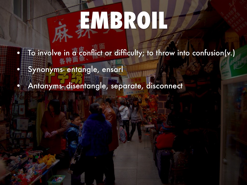To involve in a conflict or difficulty; to throw into confusion(v.)