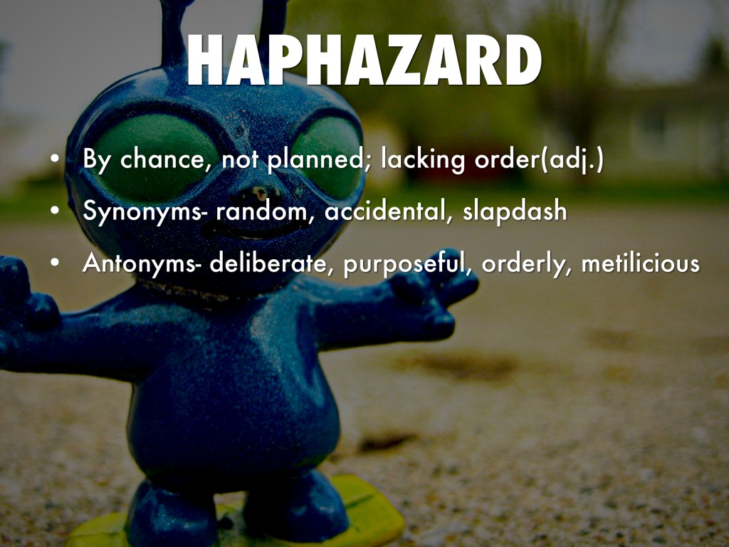Antonyms- deliberate, purposeful, orderly, metilicious