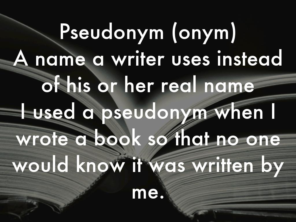 Pseudonym (onym) A name a writer uses instead of his or her real name I used a pseudonym when I wrote a book so that no one would know it was written by me.