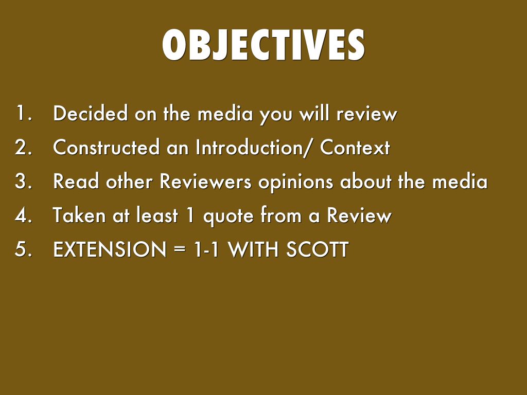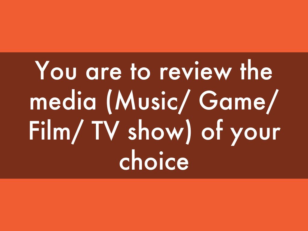 You are to review the media (Music/ Game/ Film/ TV show) of your choice