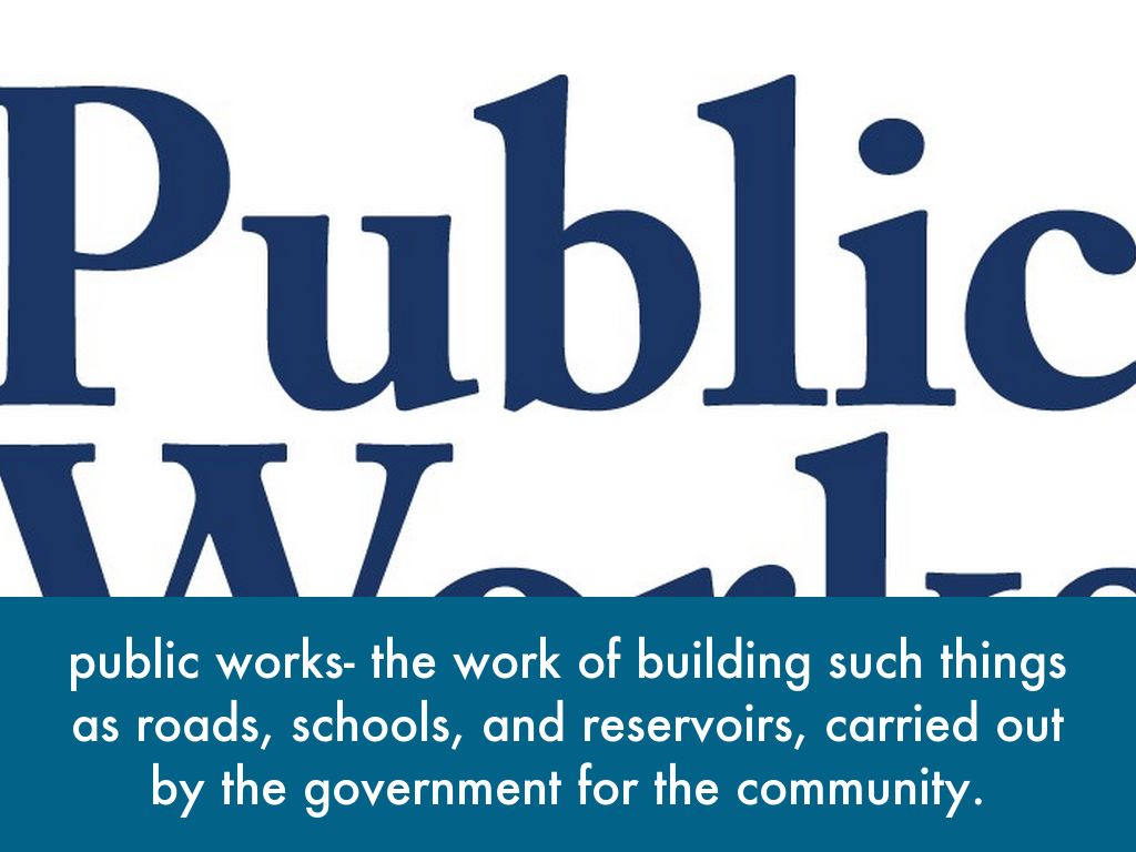public works- the work of building such things as roads, schools, and reservoirs, carried out by the government for the community.