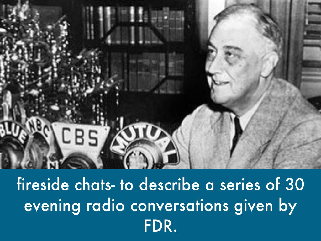fireside chats- to describe a series of 30 evening radio conversations given by FDR.