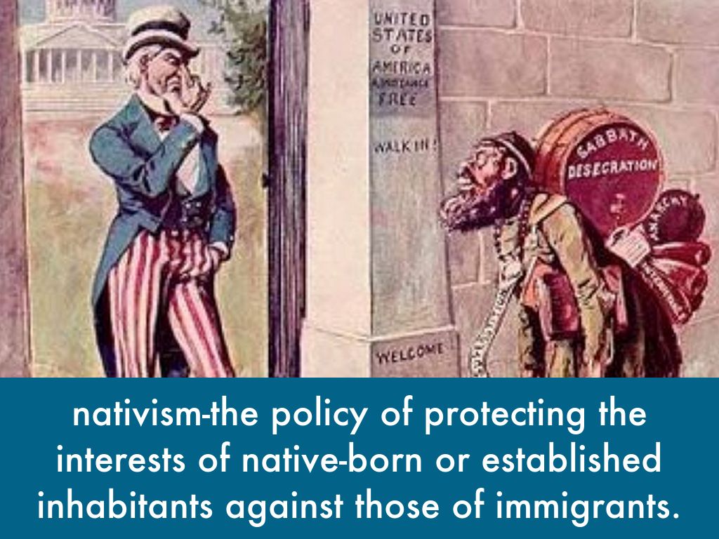 nativism-the policy of protecting the interests of native-born or established inhabitants against those of immigrants.