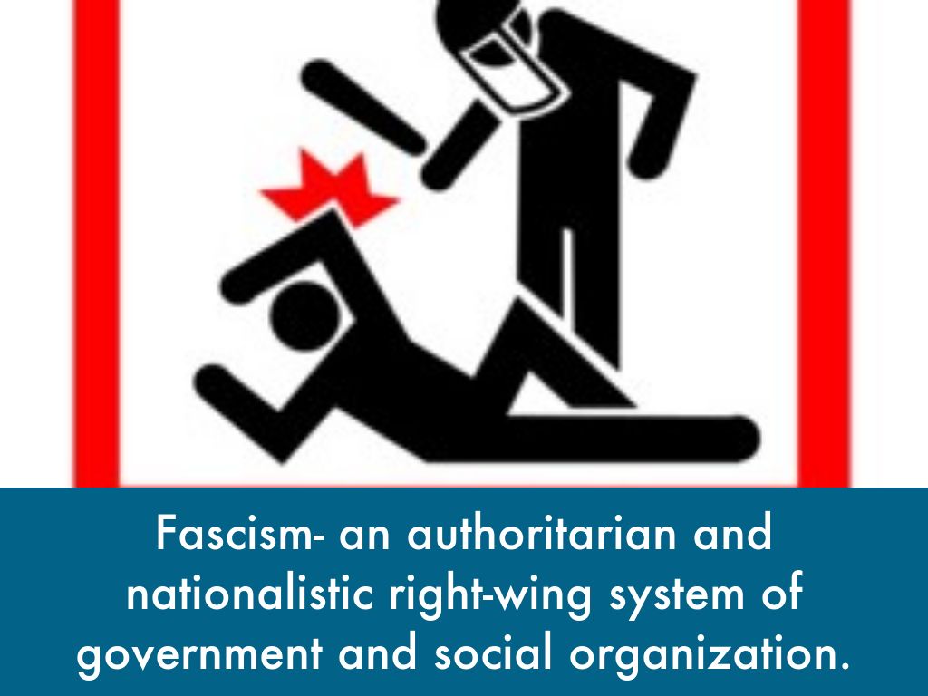 Fascism- an authoritarian and nationalistic right-wing system of government and social organization.