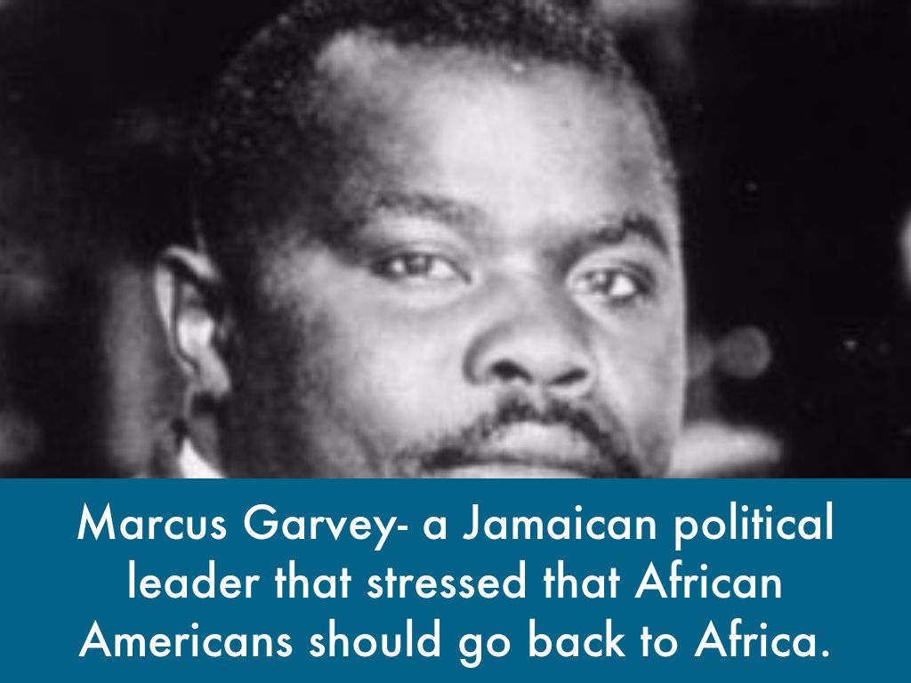 Marcus Garvey- a Jamaican political leader that stressed that African Americans should go back to Africa.