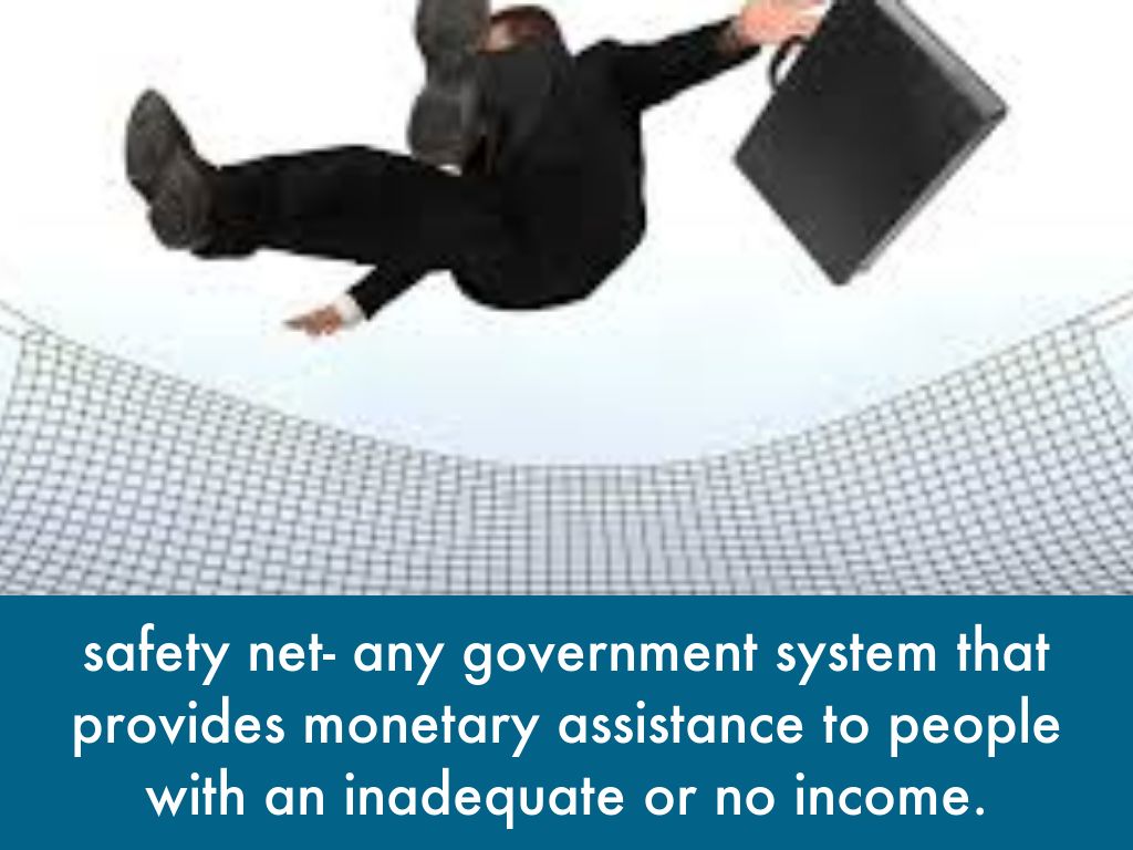 safety net- any government system that provides monetary assistance to people with an inadequate or no income.