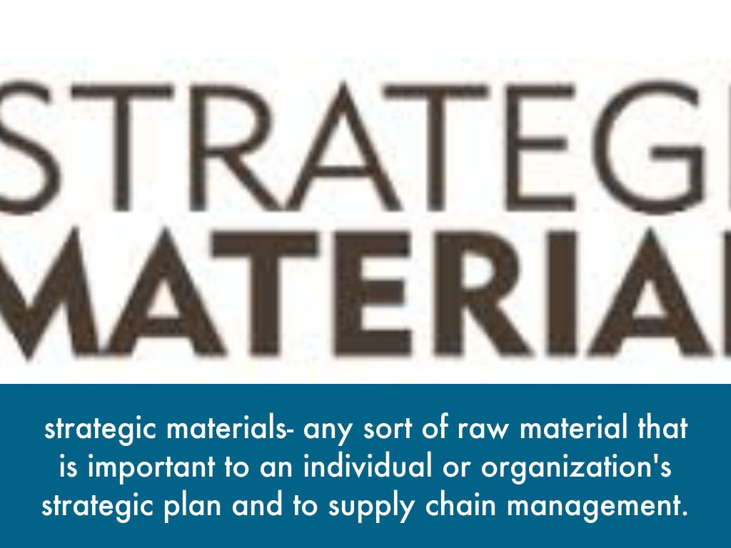 strategic materials- any sort of raw material that is important to an individual or organization's strategic plan and to supply chain management.