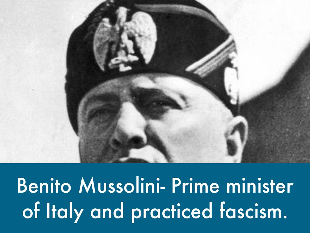 Benito Mussolini- Prime minister of Italy and practiced fascism.