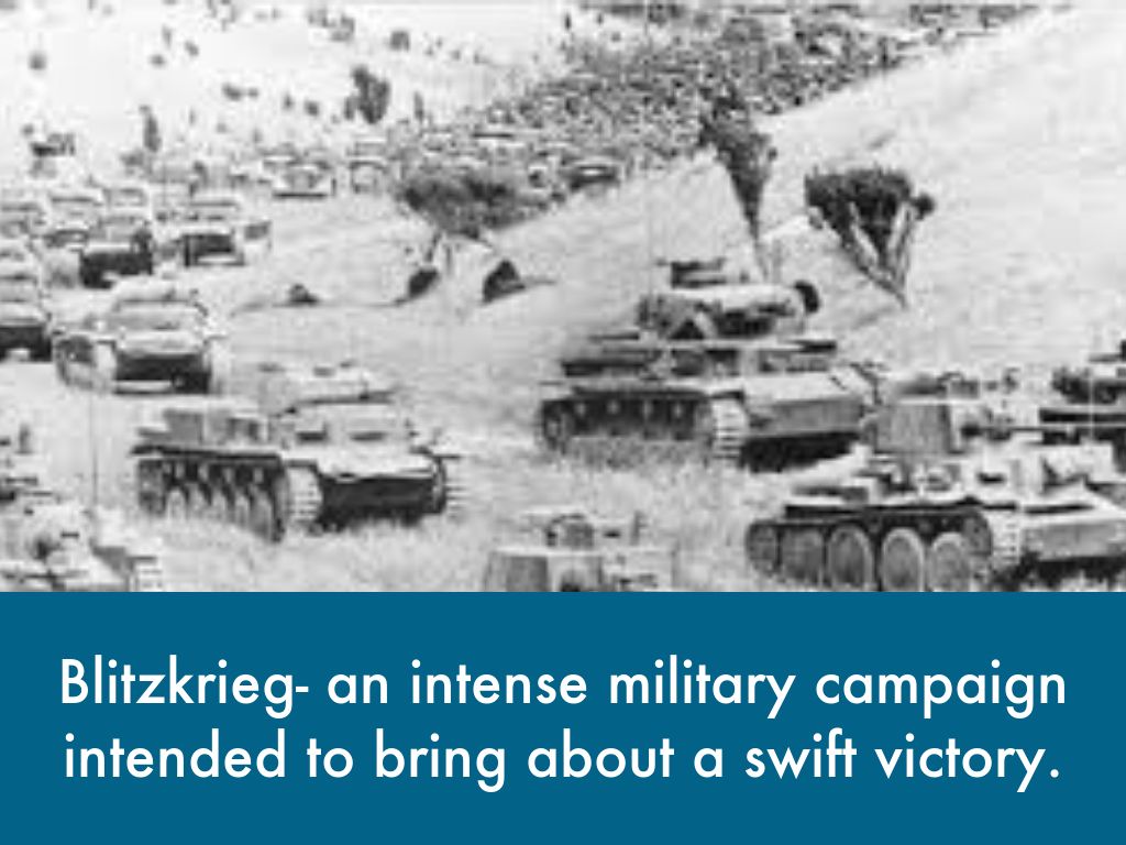 Blitzkrieg- an intense military campaign intended to bring about a swift victory.