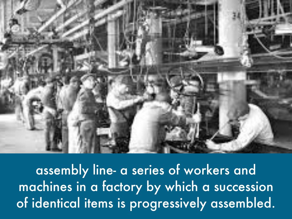assembly line- a series of workers and machines in a factory by which a succession of identical items is progressively assembled.