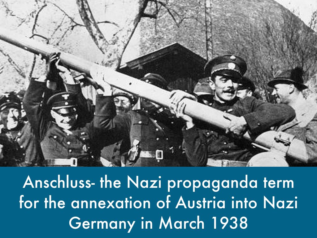 Anschluss- the Nazi propaganda term for the annexation of Austria into Nazi Germany in March 1938