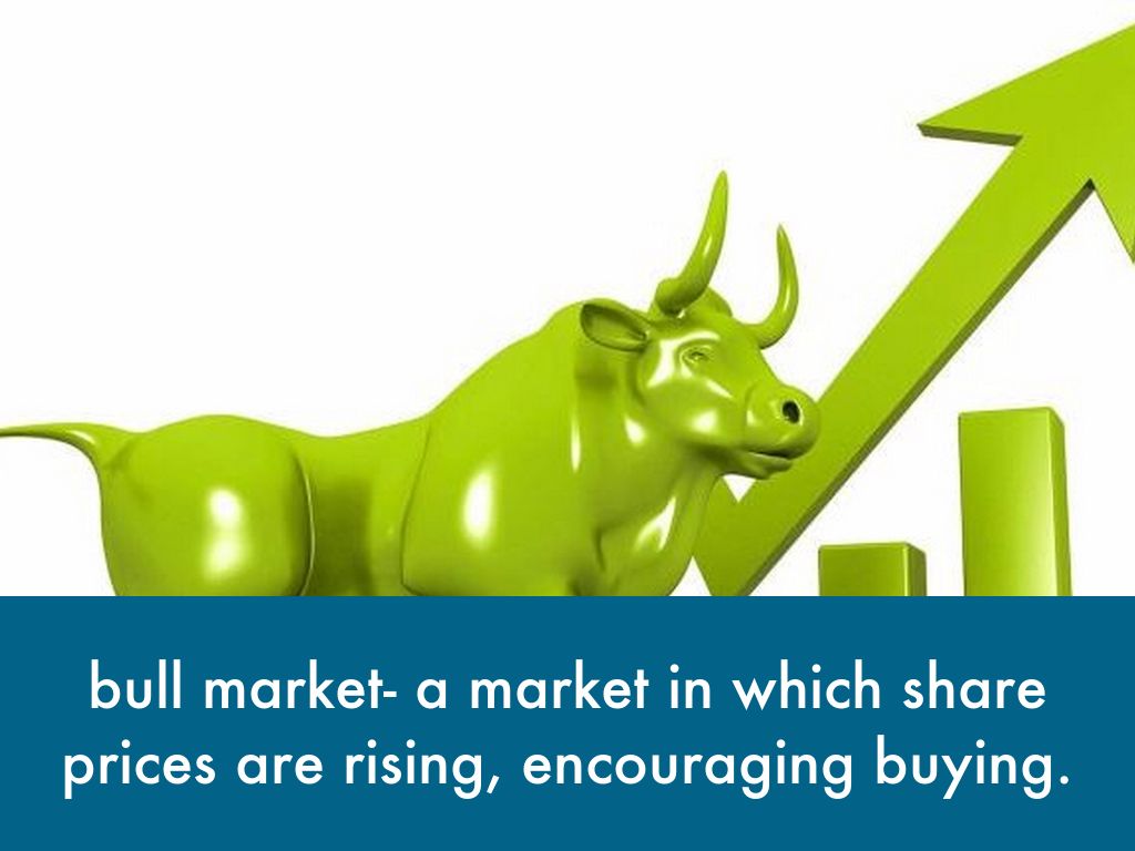 bull market- a market in which share prices are rising, encouraging buying.