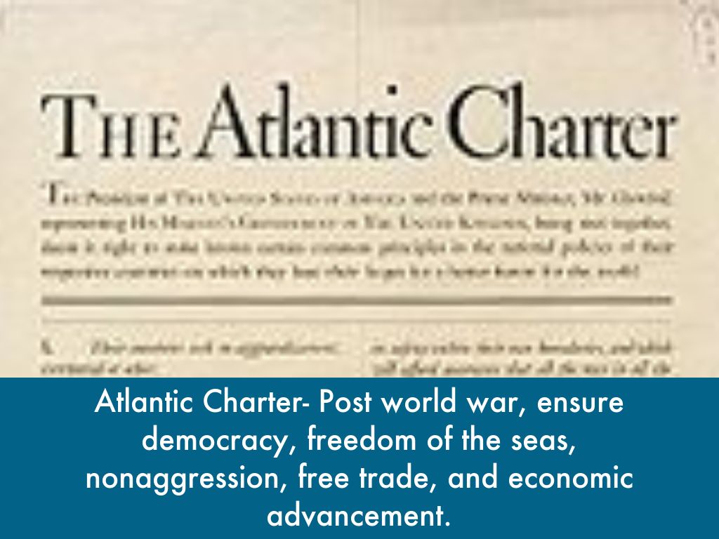 Atlantic Charter- Post world war, ensure democracy, freedom of the seas, nonaggression, free trade, and economic advancement.