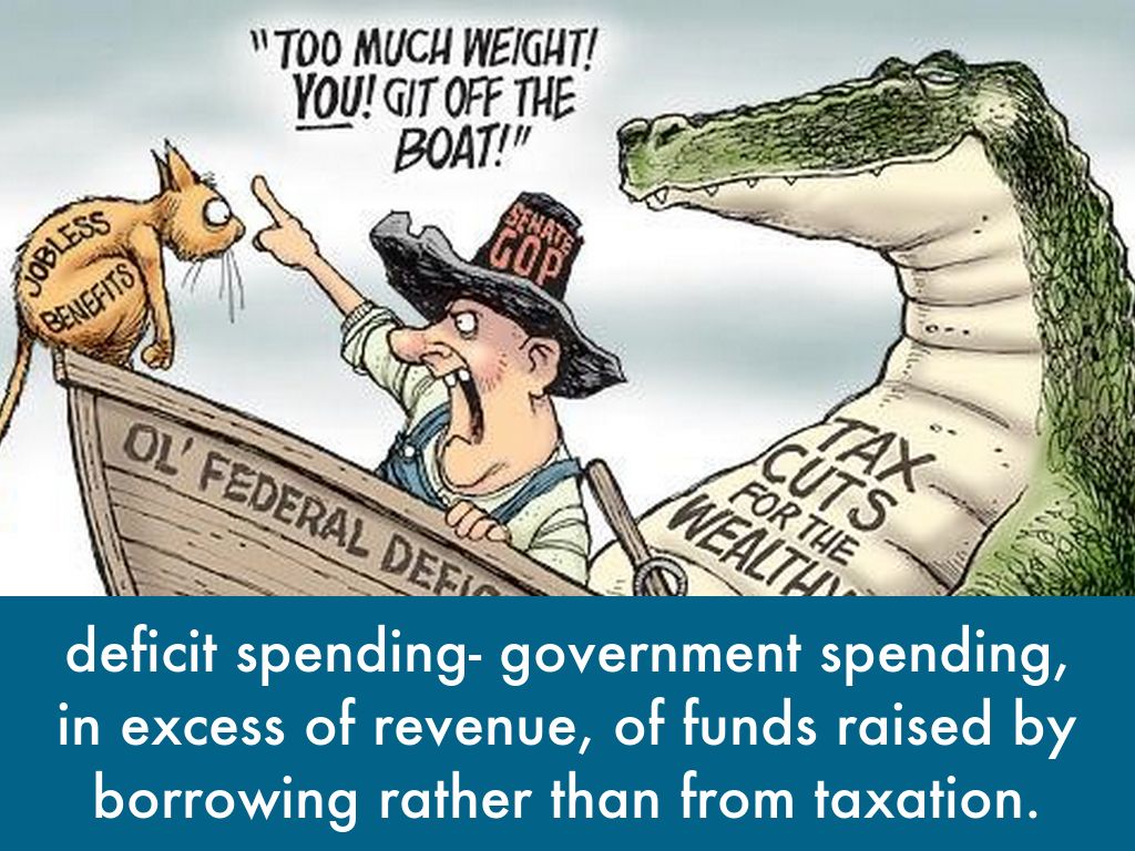 deficit spending- government spending, in excess of revenue, of funds raised by borrowing rather than from taxation.