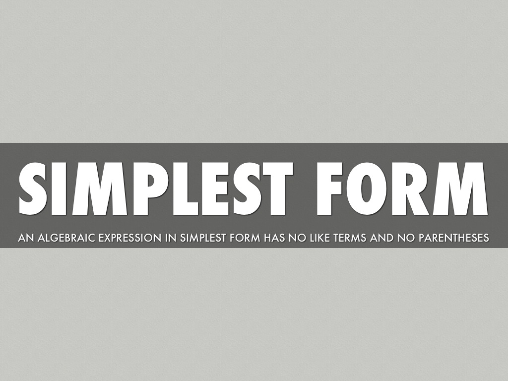 AN ALGEBRAIC EXPRESSION IN SIMPLEST FORM HAS NO LIKE TERMS AND NO PARENTHESES