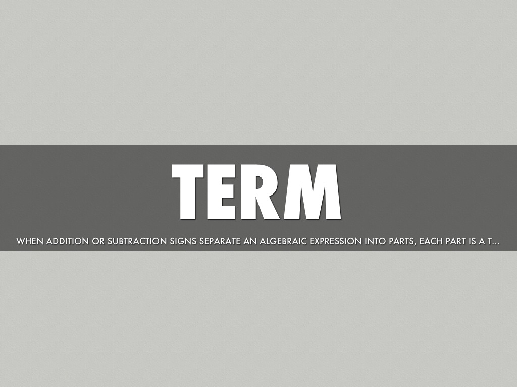 WHEN ADDITION OR SUBTRACTION SIGNS SEPARATE AN ALGEBRAIC EXPRESSION INTO PARTS, EACH PART IS A TERM