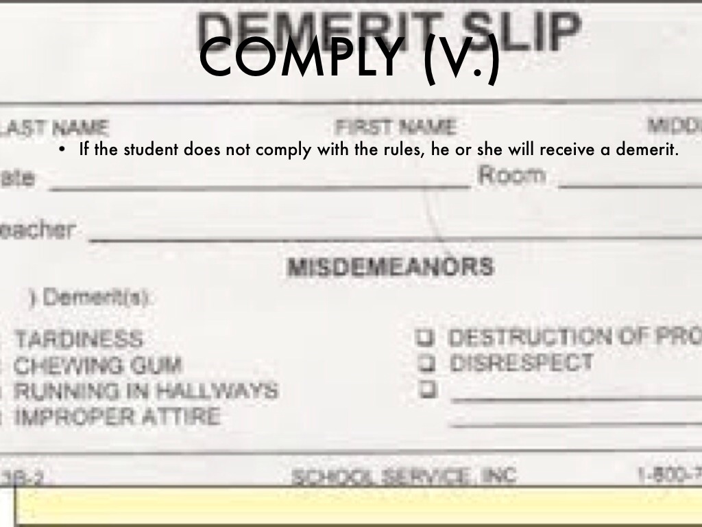 If the student does not comply with the rules, he or she will receive a demerit.