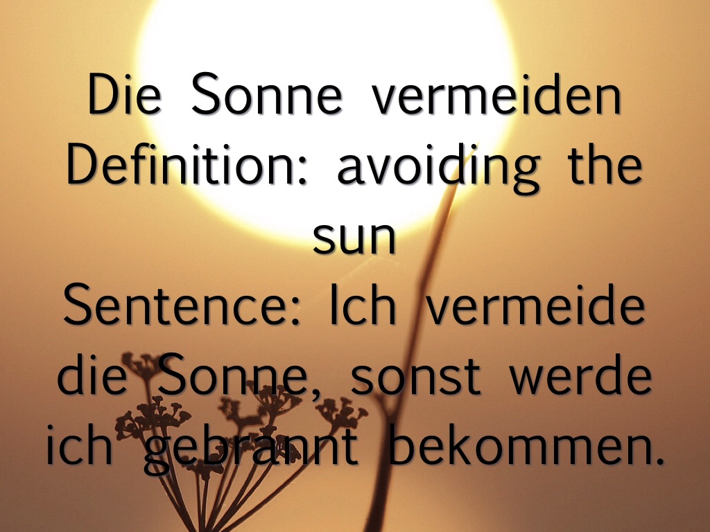 Sentence: Ich vermeide die Sonne, sonst werde ich gebrannt bekommen.