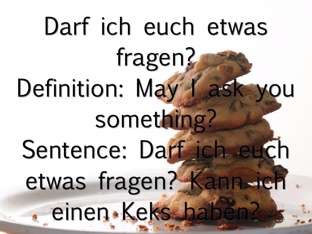 Sentence: Darf ich euch etwas fragen? Kann ich einen Keks haben?