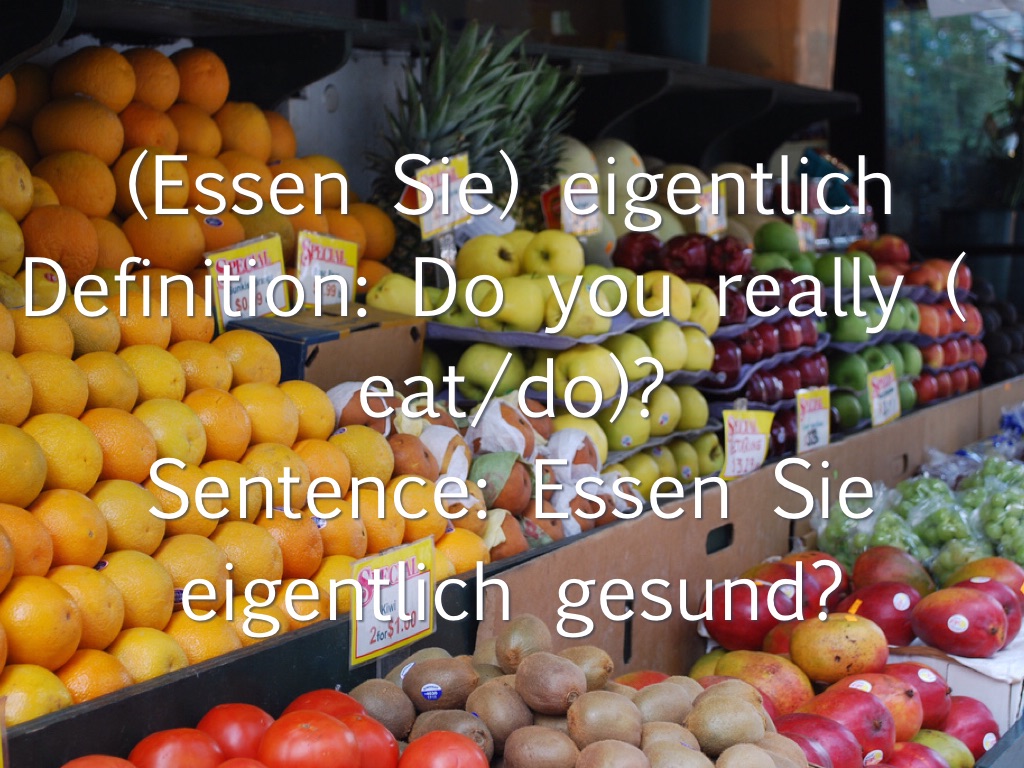 Sentence: Essen Sie eigentlich gesund?