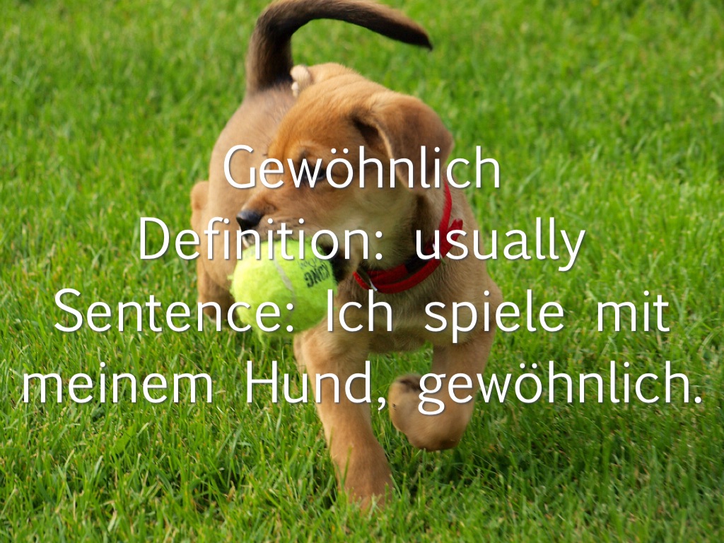 Sentence: Ich spiele mit meinem Hund, gewöhnlich.