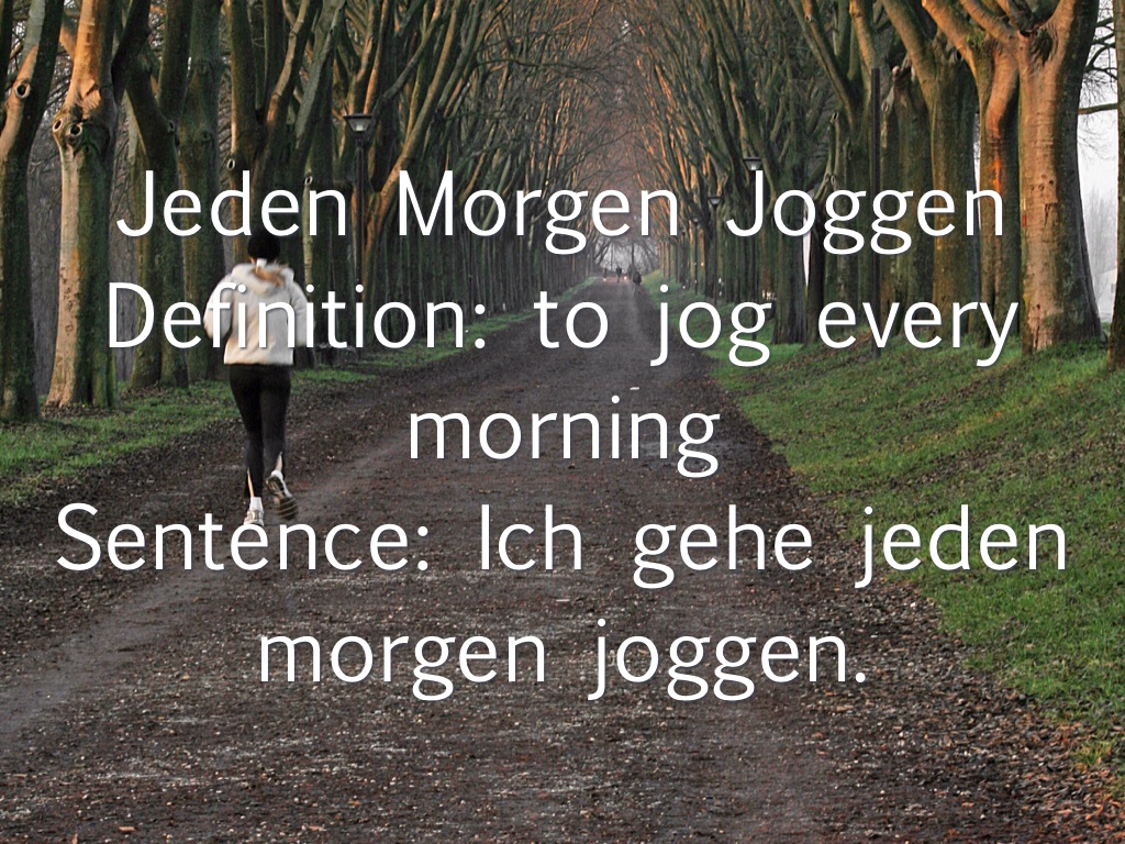Sentence: Ich gehe jeden morgen joggen.