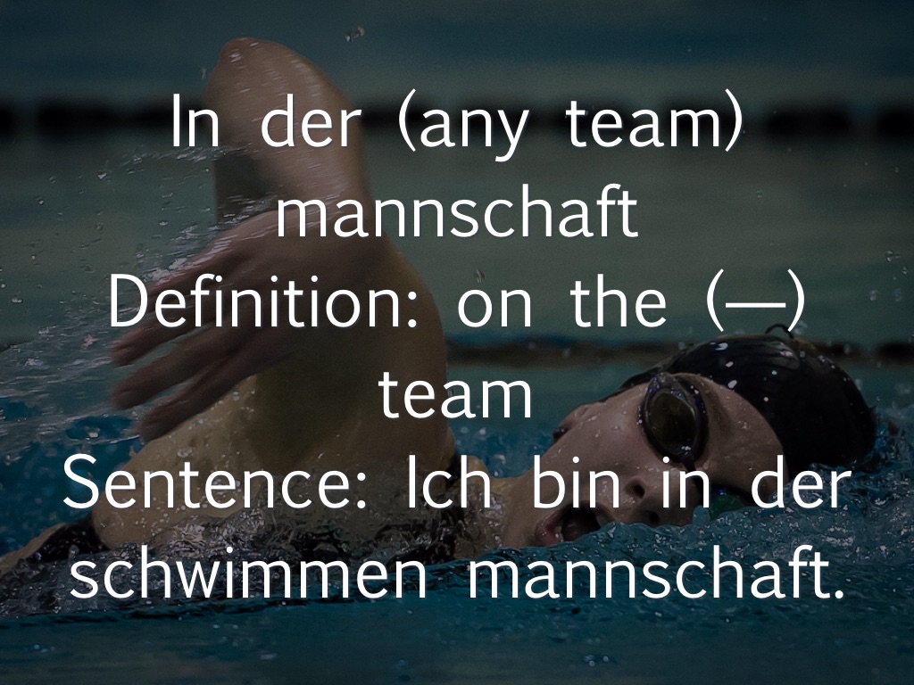 Sentence: Ich bin in der schwimmen mannschaft.