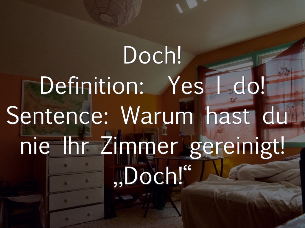 Sentence: Warum hast du nie Ihr Zimmer gereinigt! „Doch!“