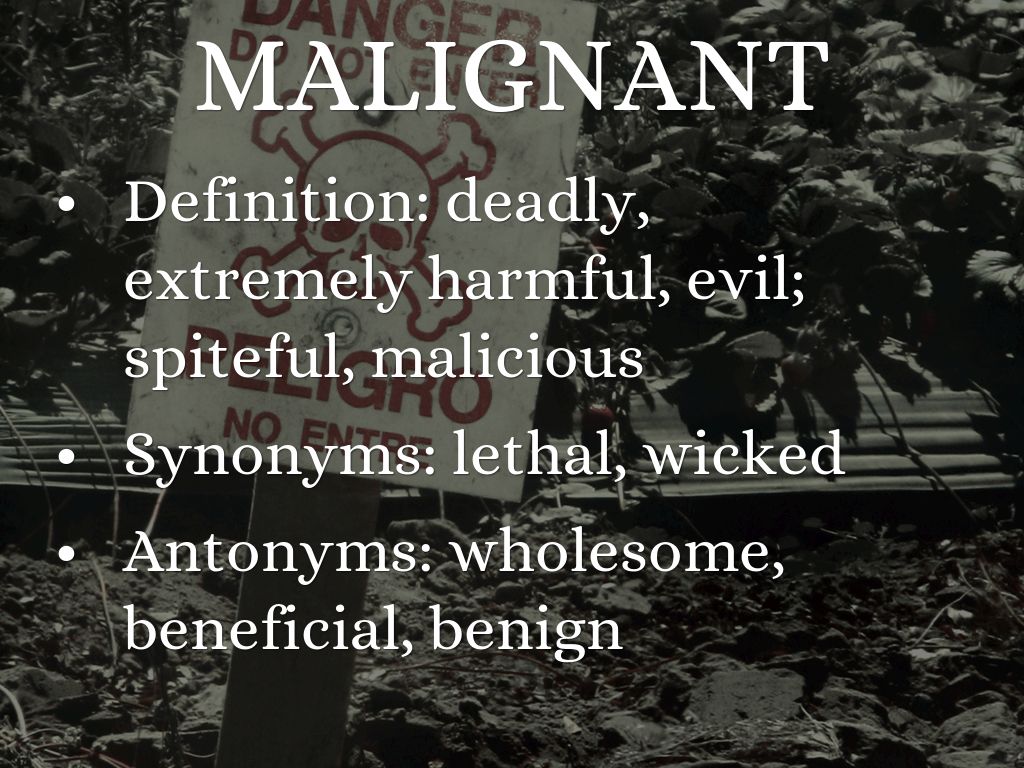 Definition: deadly, extremely harmful, evil; spiteful, malicious