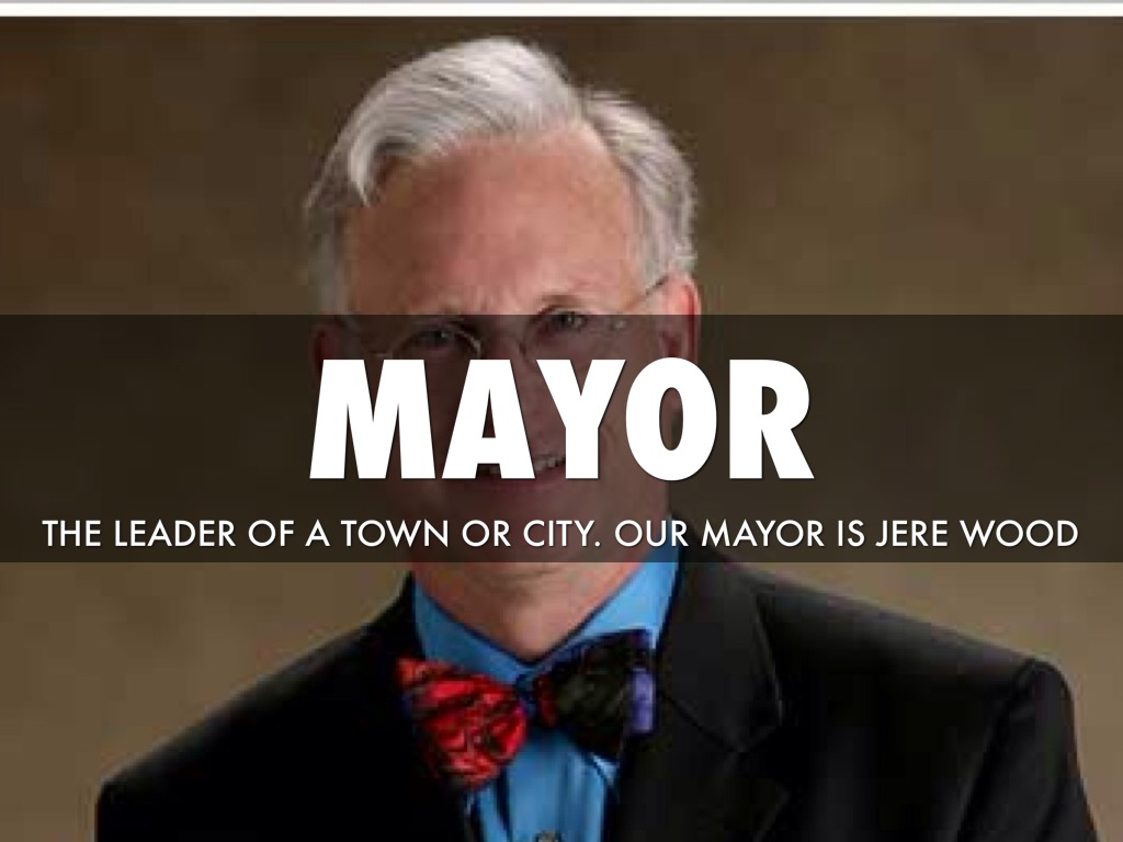 THE LEADER OF A TOWN OR CITY. OUR MAYOR IS JERE WOOD