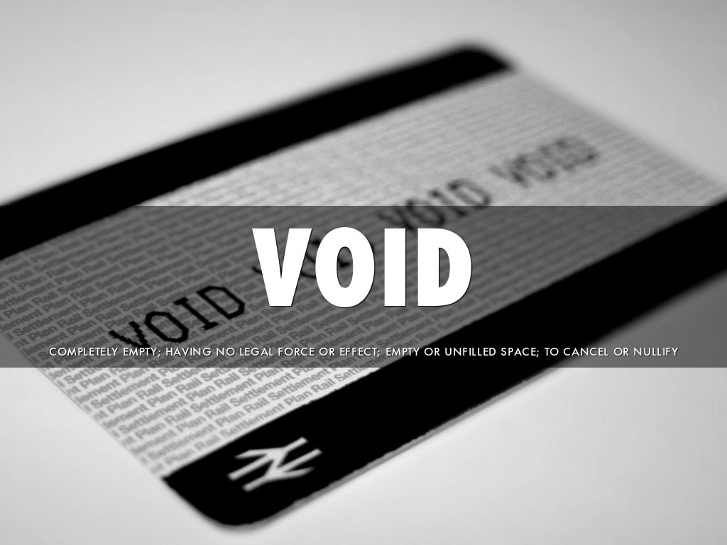 COMPLETELY EMPTY; HAVING NO LEGAL FORCE OR EFFECT; EMPTY OR UNFILLED SPACE; TO CANCEL OR NULLIFY