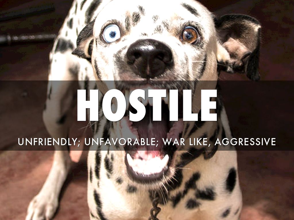 UNFRIENDLY; UNFAVORABLE; WAR LIKE, AGGRESSIVE