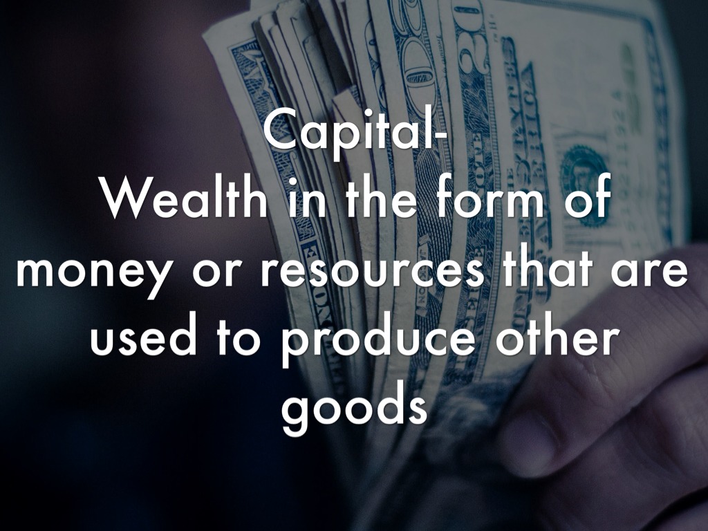 Wealth in the form of money or resources that are used to produce other goods