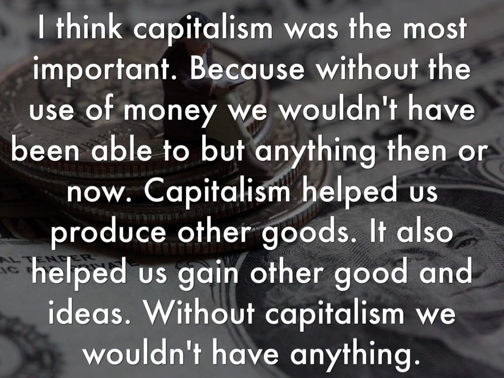 I think capitalism was the most important. Because without the use of money we wouldn't have been able to but anything then or now. Capitalism helped us produce other goods. It also helped us gain other good and ideas. Without capitalism we wouldn't have anything.