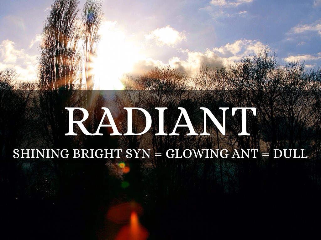 SHINING BRIGHT SYN = GLOWING ANT = DULL