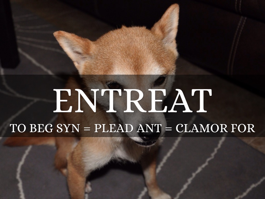 TO BEG SYN = PLEAD ANT = CLAMOR FOR