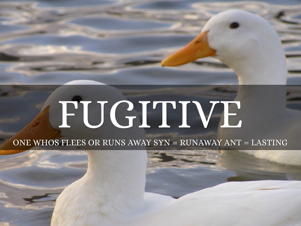 ONE WHOS FLEES OR RUNS AWAY SYN = RUNAWAY ANT = LASTING