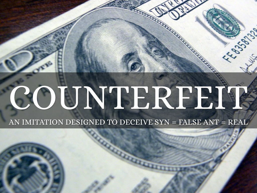AN IMITATION DESIGNED TO DECEIVE SYN = FALSE ANT = REAL