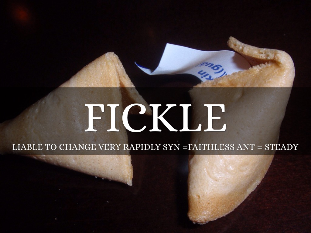 LIABLE TO CHANGE VERY RAPIDLY SYN =FAITHLESS ANT = STEADY