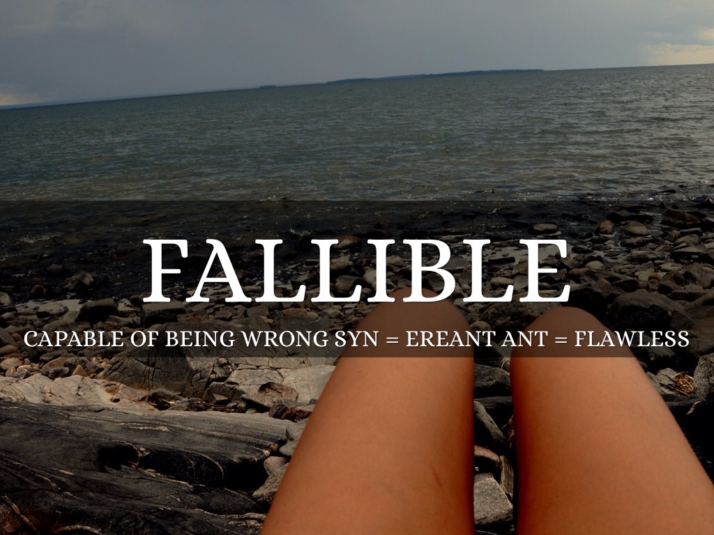 CAPABLE OF BEING WRONG SYN = EREANT ANT = FLAWLESS