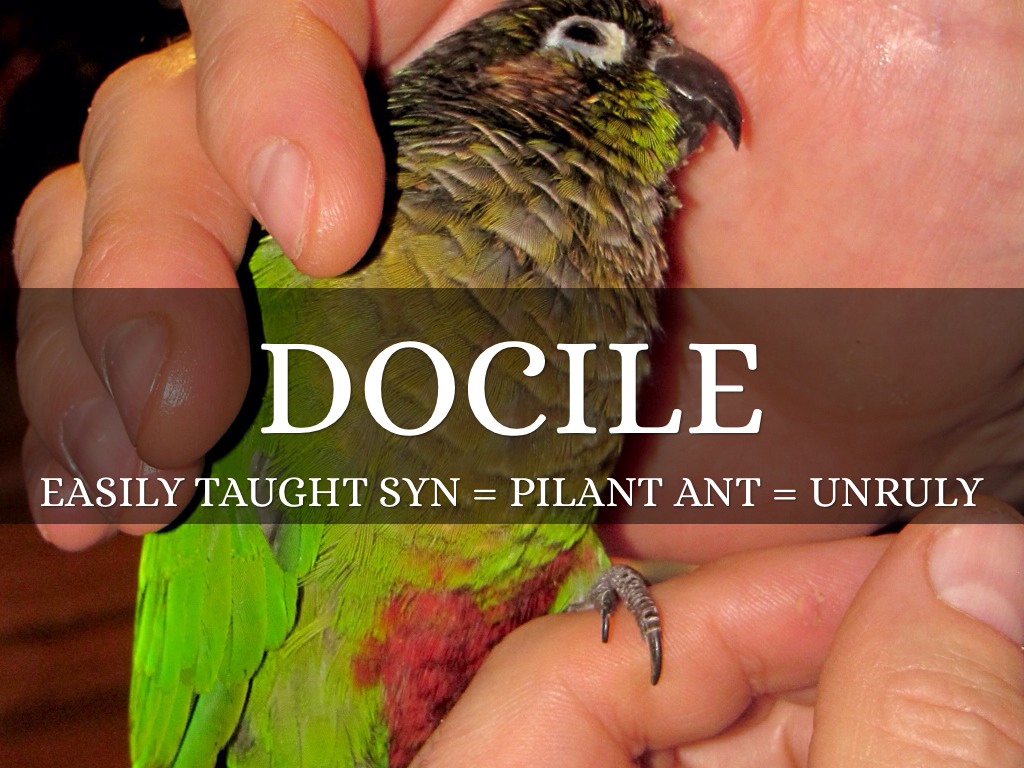 EASILY TAUGHT SYN = PILANT ANT = UNRULY