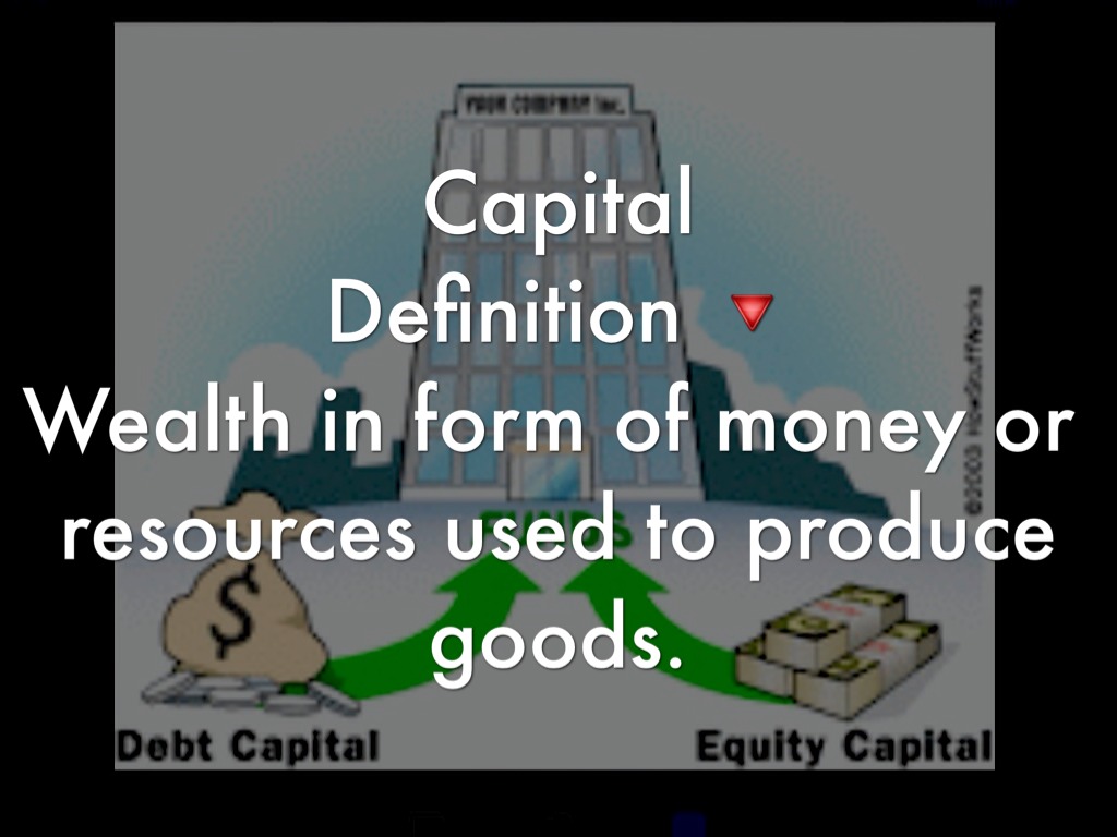 Wealth in form of money or resources used to produce goods.