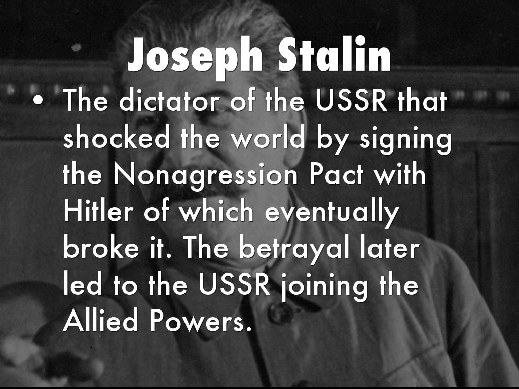 The dictator of the USSR that shocked the world by signing the Nonagression Pact with Hitler of which eventually broke it. The betrayal later led to the USSR joining the Allied Powers.