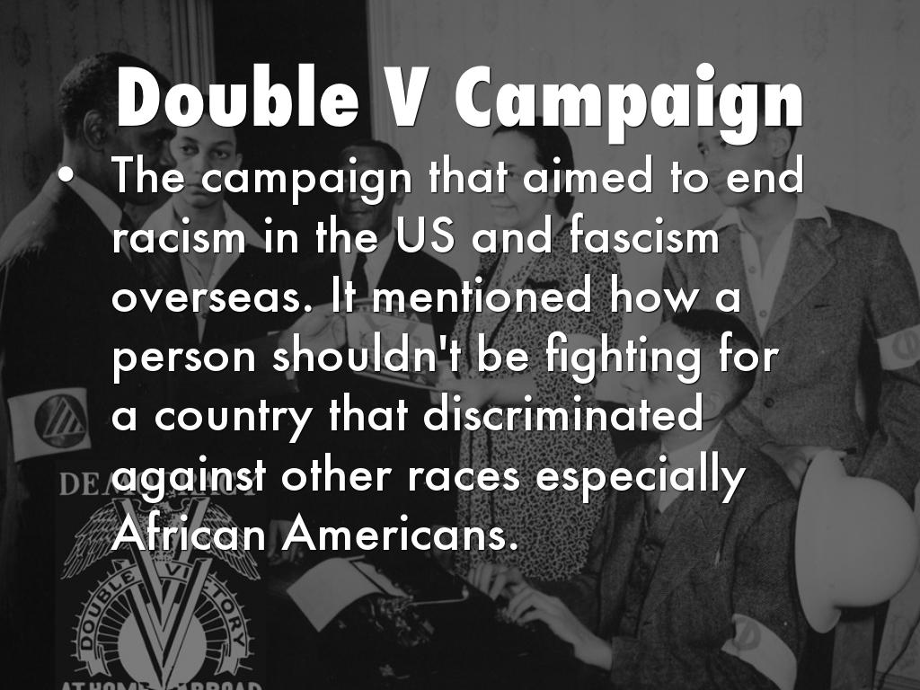 The campaign that aimed to end racism in the US and fascism overseas. It mentioned how a person shouldn't be fighting for a country that discriminated against other races especially African Americans.