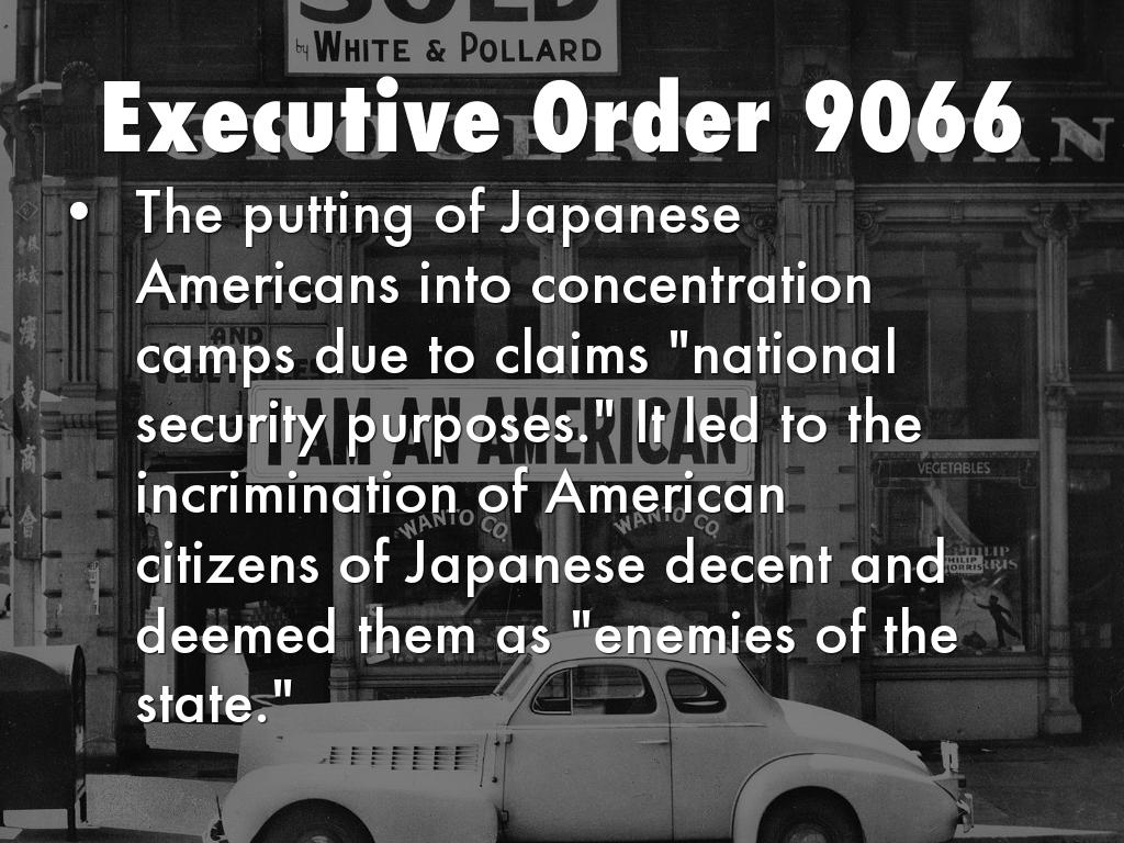 The putting of Japanese Americans into concentration camps due to claims "national security purposes." It led to the incrimination of American citizens of Japanese decent and deemed them as "enemies of the state."