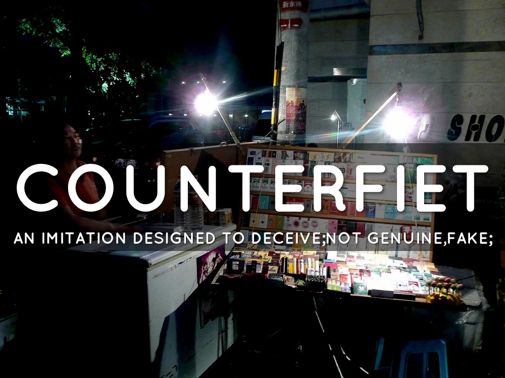 AN IMITATION DESIGNED TO DECEIVE;NOT GENUINE,FAKE;