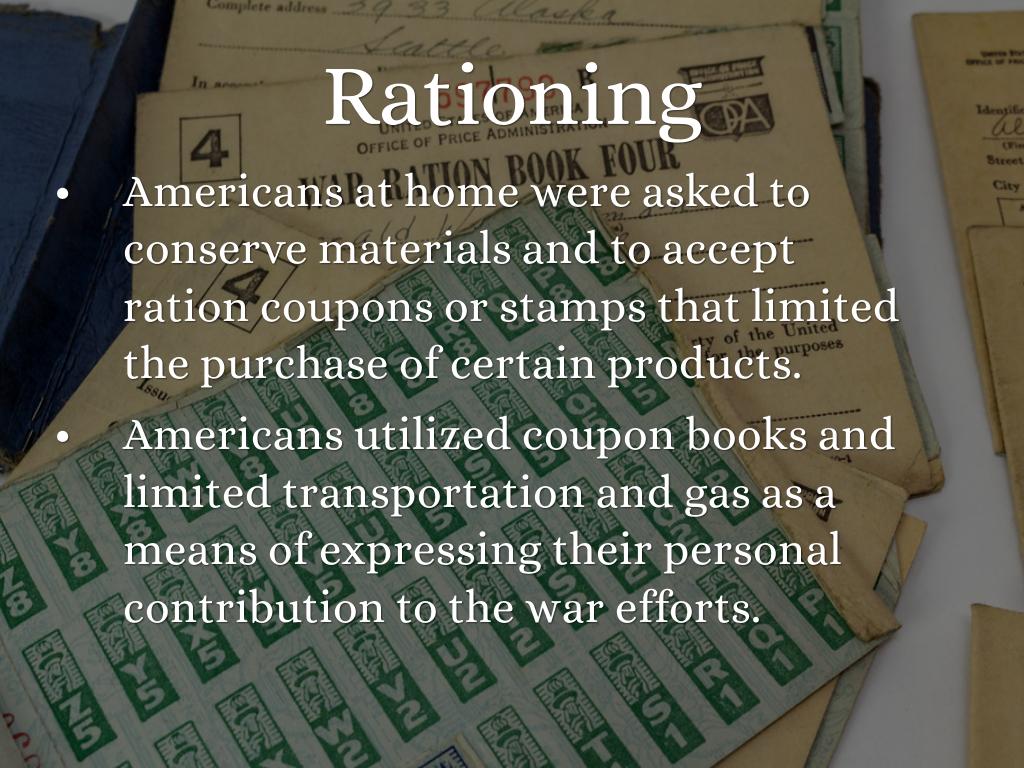 To support war efforts, citizens donated money known as war bonds. The purpose was to collect money and increase income tax rates to receive more funds for the war. In addition, higher taxes reduced consumer demand on scarce goods.