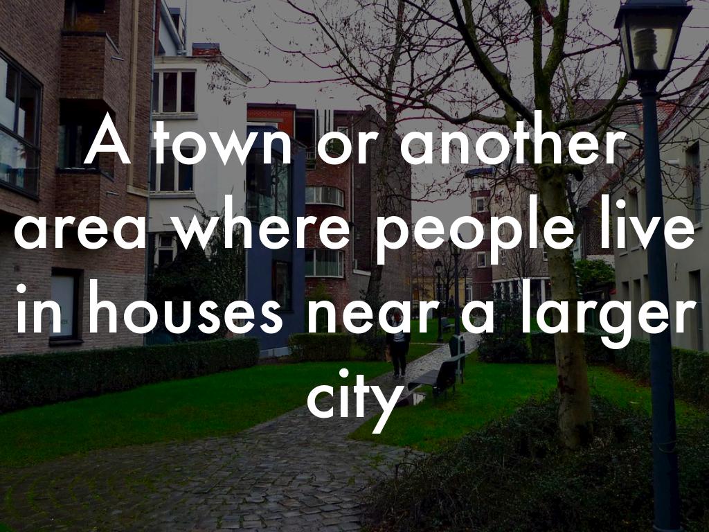 A town or another area where people live in houses near a larger city