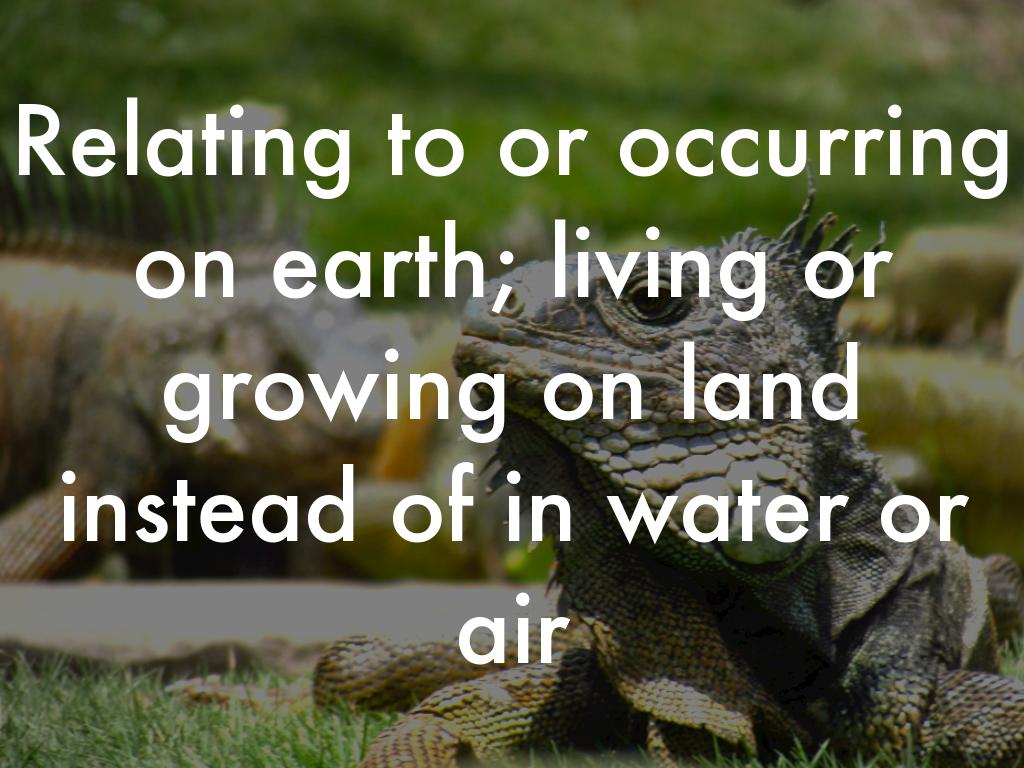Relating to or occurring on earth; living or growing on land instead of in water or air